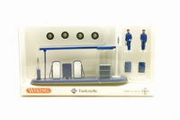Tankstelle, 2 Tankwarte, 2 Fässer, 4 PKW Reifen |